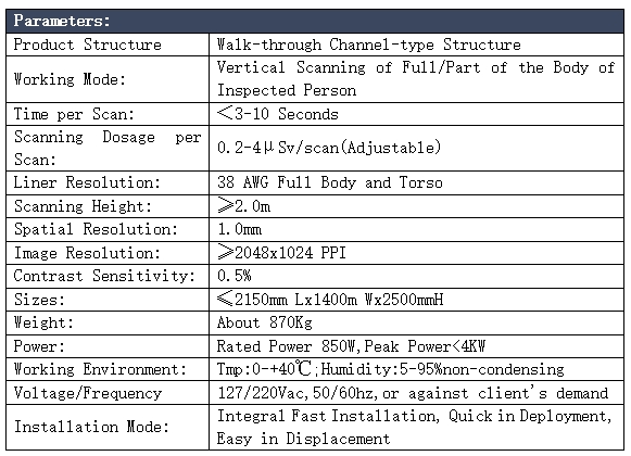 This equipment employs a unique channel-type structural design and global leading micro-dose X-ray transmission imaging technology. It enables non-contact, intelligent security screening of contraband concealed inside and on the body of the inspected person, eliminating the need for manual body searches. It displays real-time images of contraband and the body parts where they are concealed, achieving precise security screening. The detection range includes firearms and ammunition, controlled knives (ceramic knives), explosives, hazardous liquids, microelectronic devices, pills, powders, and various metal and non-metal items. Its imaging effects and security inspection performance are leading in the world, and it is suitable for special security inspection applications. It is primarily used in public security, prisons, drug rehabilitation centers, courts, mining, airports, customs, border inspection, and transportation industries.